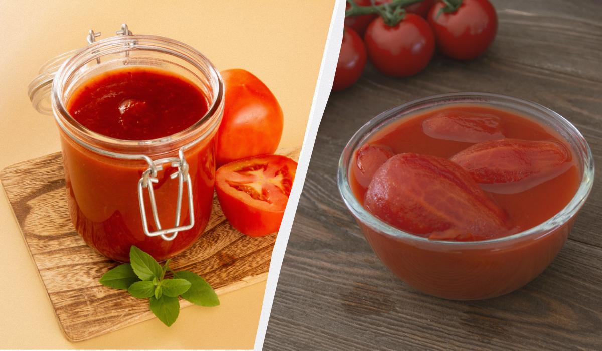 Tomaten in tomatensap – een zeer smakelijke bereiding, handig voor het maken van tomatengerechten.